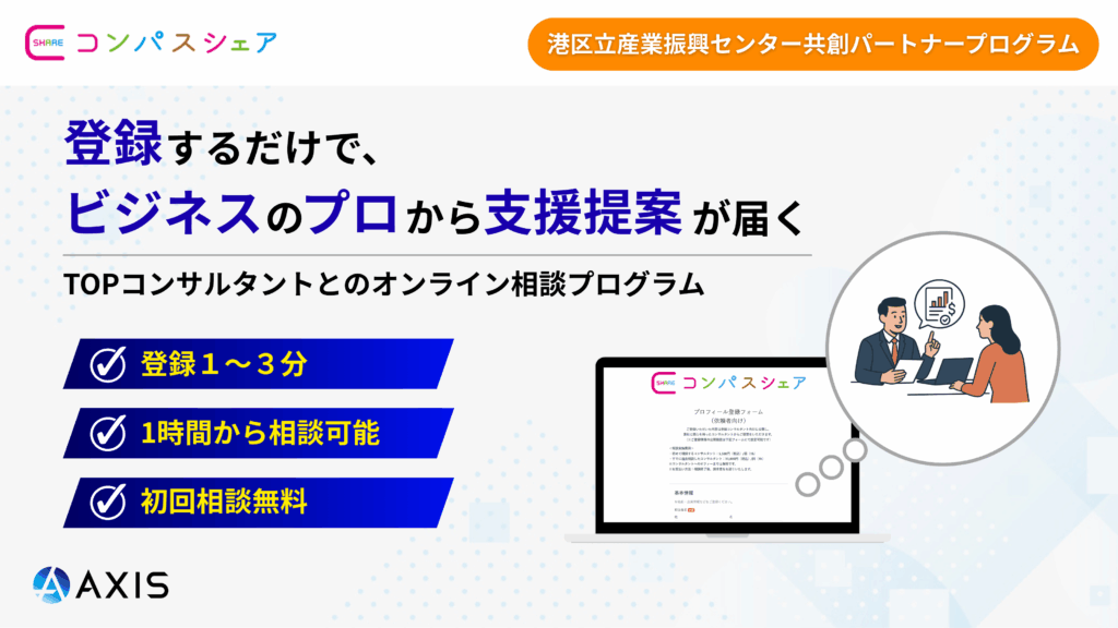 相談できるスポットコンサルサービス「コンパスシェア」をご案内いたします。