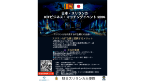 日本・スリランカ ICTビジネスマッチングイベント2026 <イベント概要>日時:2026年4月6日(月)18:30 ~会場:港区立産業振興センター 10F 研修室1参加費:無料 主催:駐日スリランカ大使館、スリランカ輸 […]
