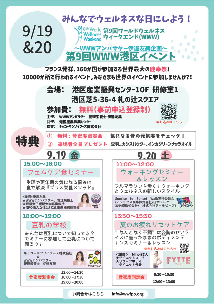 第9回ワールドウェルネス ウィークエンド 港区イベント【センター共催】