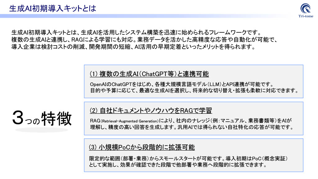 AIの進化は非常に早いので、この初期導入キットも日々改善と改修を続けています。お客様が素早く導入後のイメージを確認できる形を常に追いかけていますね。