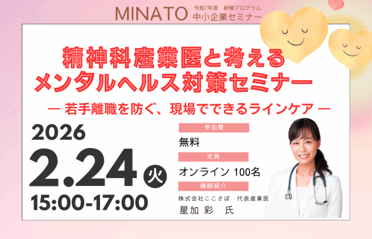 【参加無料】精神科産業医と考えるメンタルヘルス対策セミナー ― 若手離職を防ぐ、現場でできるラインケア ―