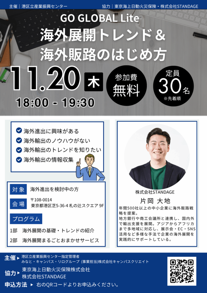 港区立産業振興センター主催「GO GLOBAL Lite 海外展開トレンド&海外販路のはじめ方 編」