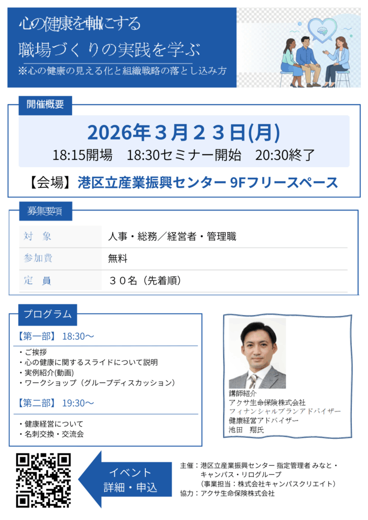 主催:港区立産業振興センター指定管理者 みなと・キャンパス・リログループ