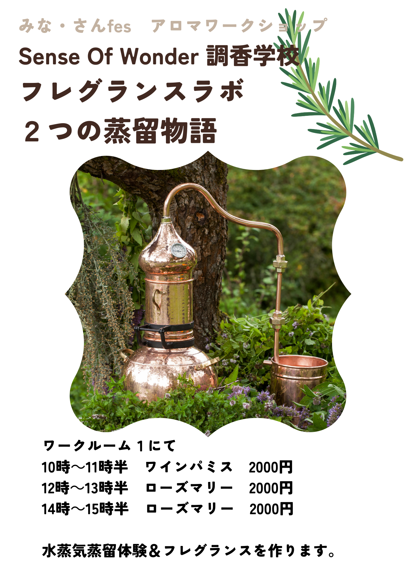 植物の力を凝縮する ローズマリーの蒸留・調香LABO
