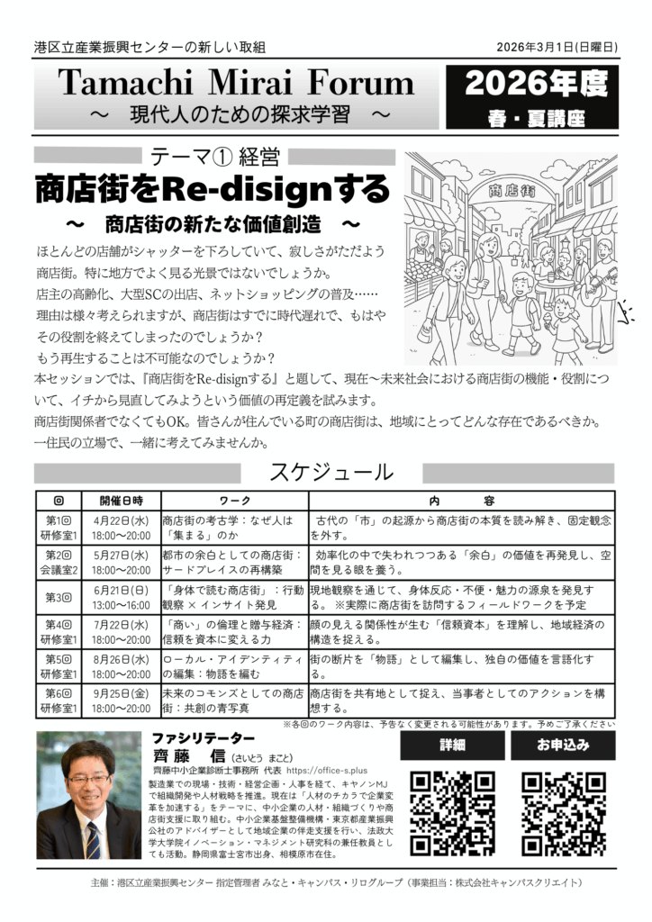 主催:港区立産業振興センター指定管理者 みなと・キャンパス・リログループ