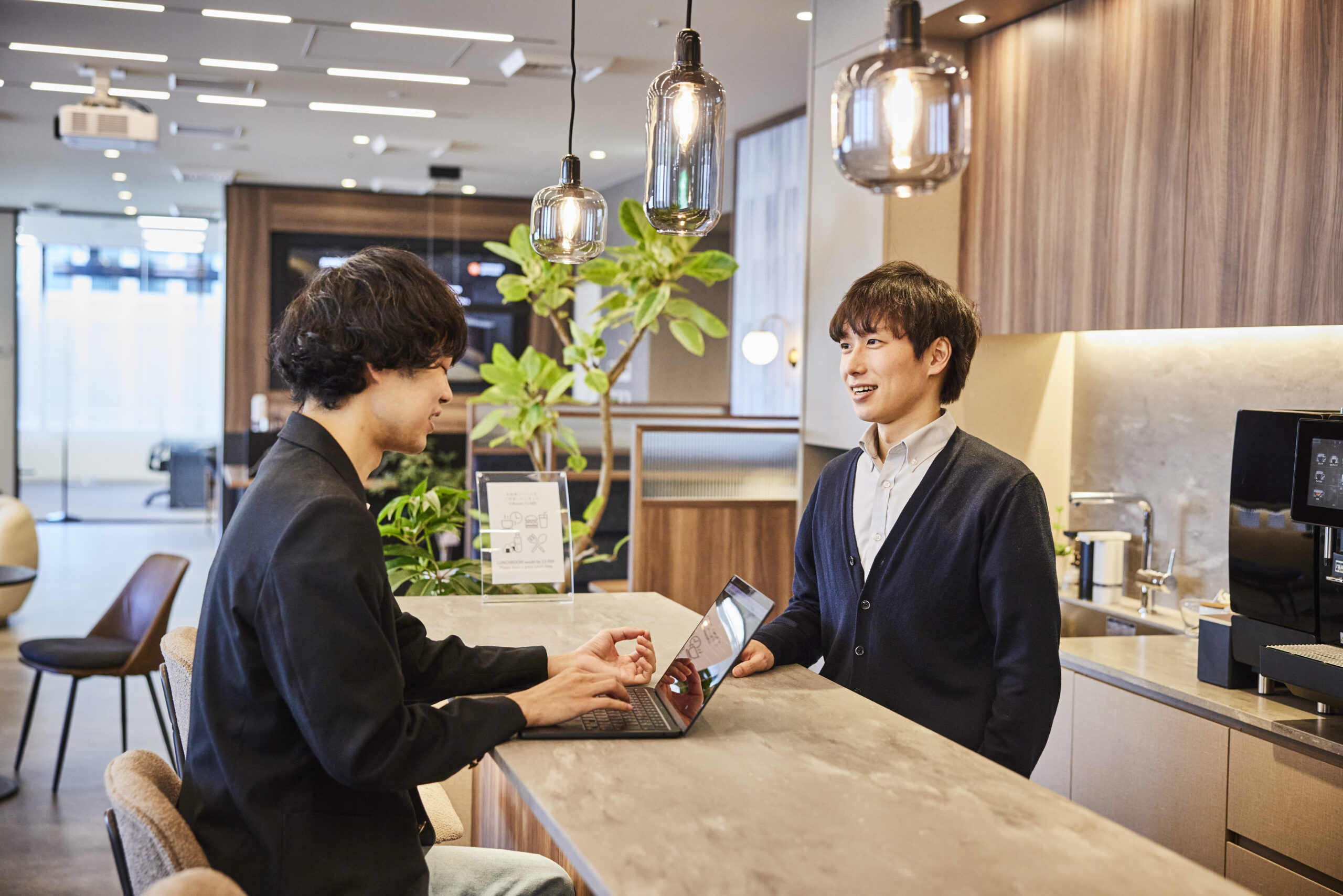 働きやすい職場環境づくりでは出社・在宅のハイブリッド勤務、1on1ミーティングの定期実施などを通じて、心理的安全性の高い職場づくりを推進している。