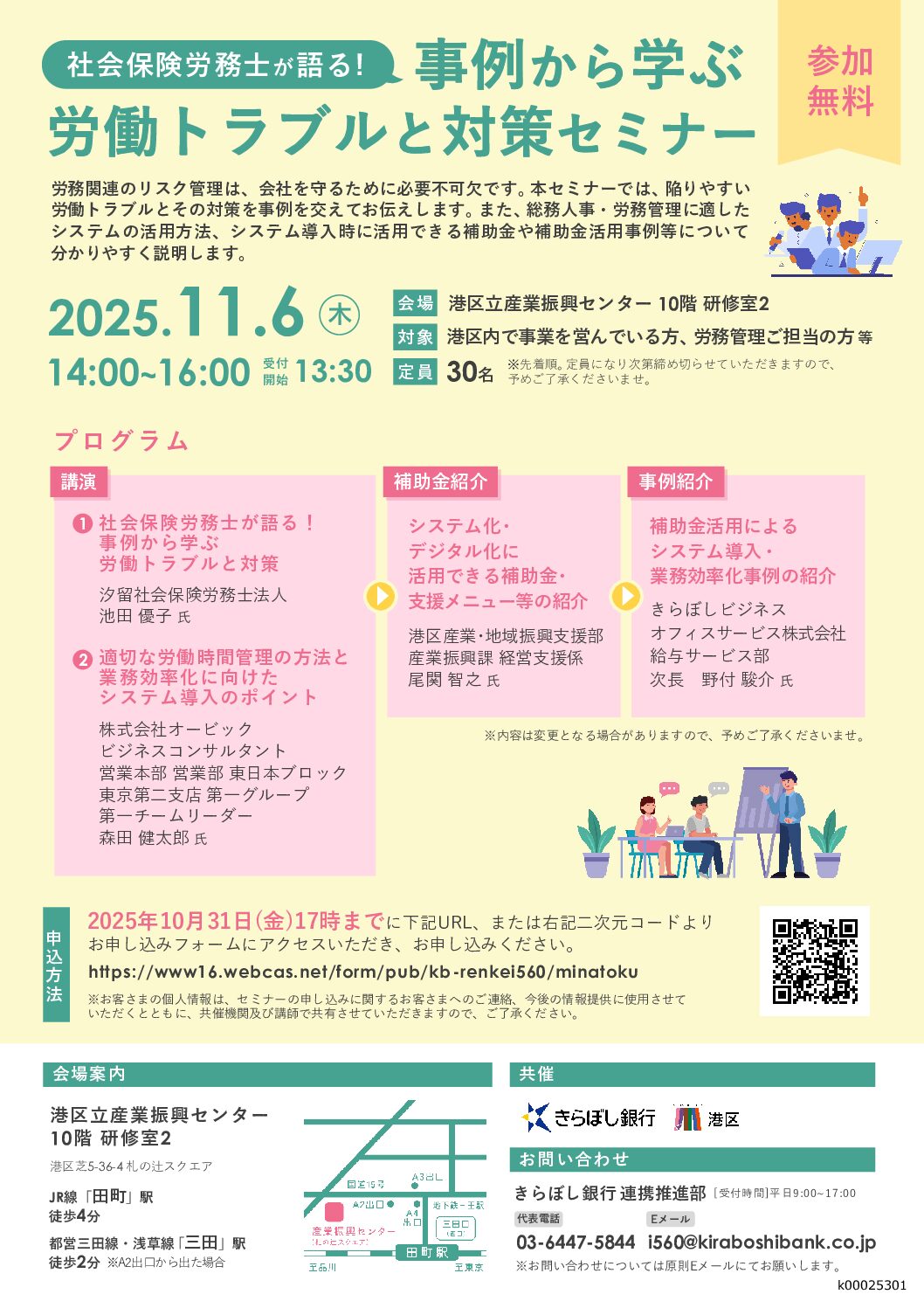 【港区・きらぼし銀行共催】事例から学ぶ労働トラブルと対策セミナー