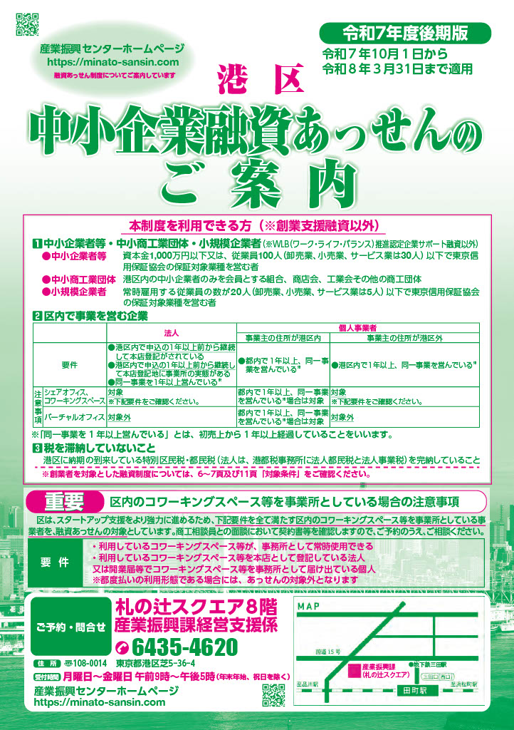 港区中小企業融資あっせんのご案内(令和7年(2025年)10月より適用)パンフレット【PDF】